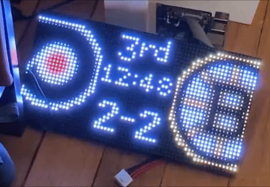 Upon doing some research, I found that a Reddit user by the name of /u/RiffnShred had already completed a very similar project in October 2019. Furthermore, the code for this project was open source and available on GitHub. RiffnShred’s project served as a huge source of inspiration for my own, especially for some graphics layouts. I began sketching what I’d like my scoreboard to look like, both physically and what’s displayed my the matrix. Many whiteboard iterations later and I had a good sense of what I wanted to create. You’ll notice the main screen for games in progress is quite similar – as the old adage goes “imitation is the greatest form of flattery”. You can check out RiffnShred’s repository here.