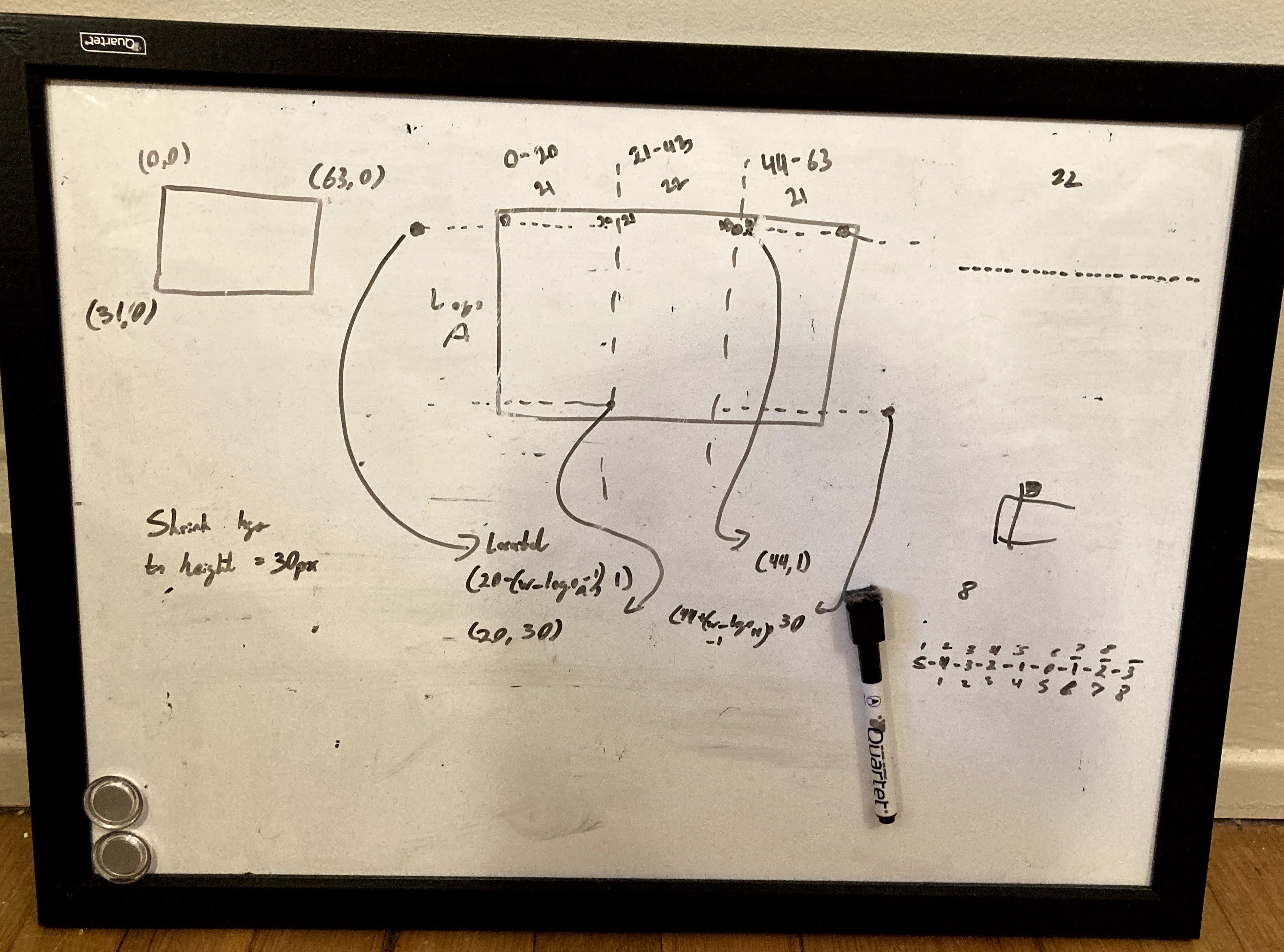 Upon doing some research, I found that a Reddit user by the name of /u/RiffnShred had already completed a very similar project in October 2019. Furthermore, the code for this project was open source and available on GitHub. RiffnShred’s project served as a huge source of inspiration for my own, especially for some graphics layouts. I began sketching what I’d like my scoreboard to look like, both physically and what’s displayed my the matrix. Many whiteboard iterations later and I had a good sense of what I wanted to create. You’ll notice the main screen for games in progress is quite similar – as the old adage goes “imitation is the greatest form of flattery”. You can check out RiffnShred’s repository here.